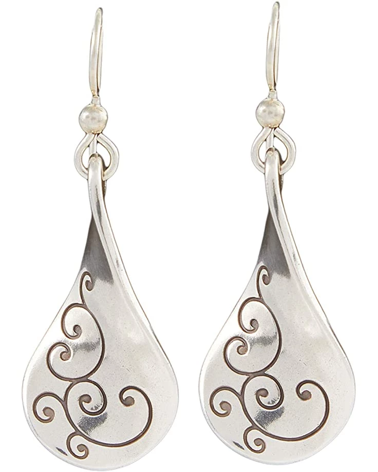 - These Brighton® earrings showcase a silver-tone plated metal drop with antiqued swirling detail.